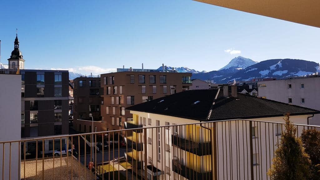 Bel appartement traversant situé au 4ème étage d'un immeuble soigné construit en 2018, au centre ville. Il est lumineux, avec ses deux balcons, et il bénéficie d'une belle vue sur le Moléson !