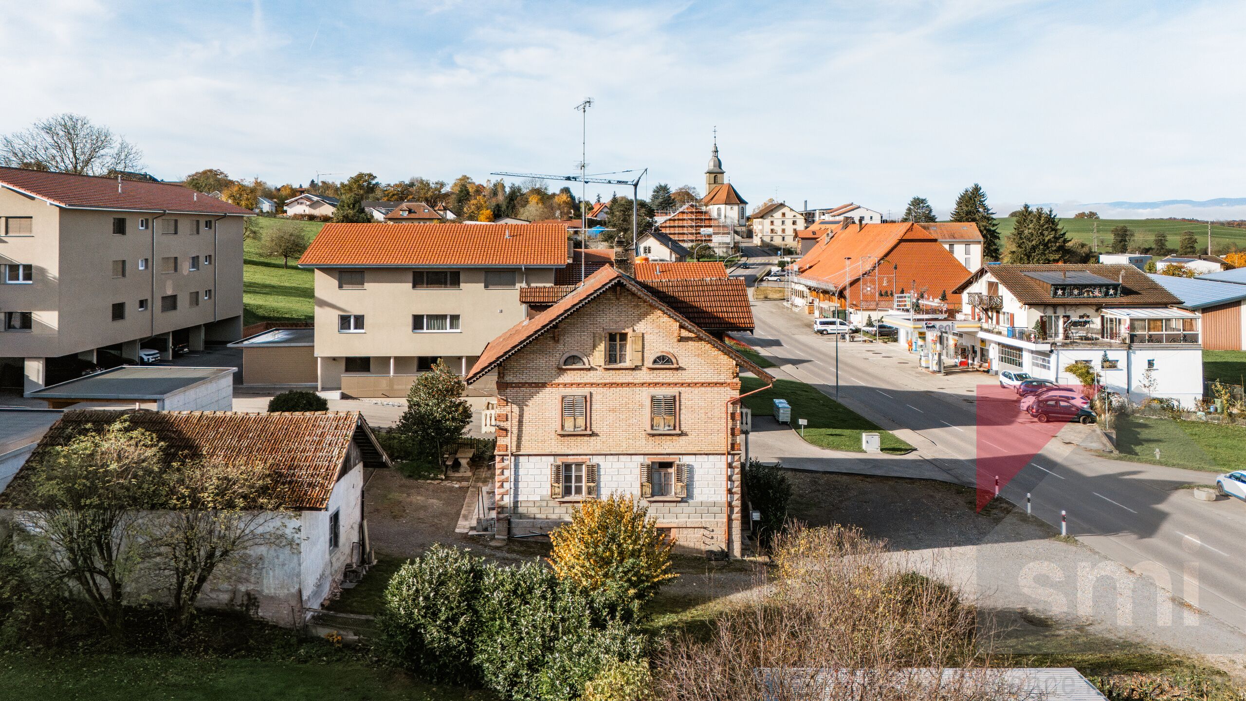 Cette maison à rénover située à Prez-vers-Noréaz, près de Fribourg, offre un beau potentiel de par sa situation en zone centre village .