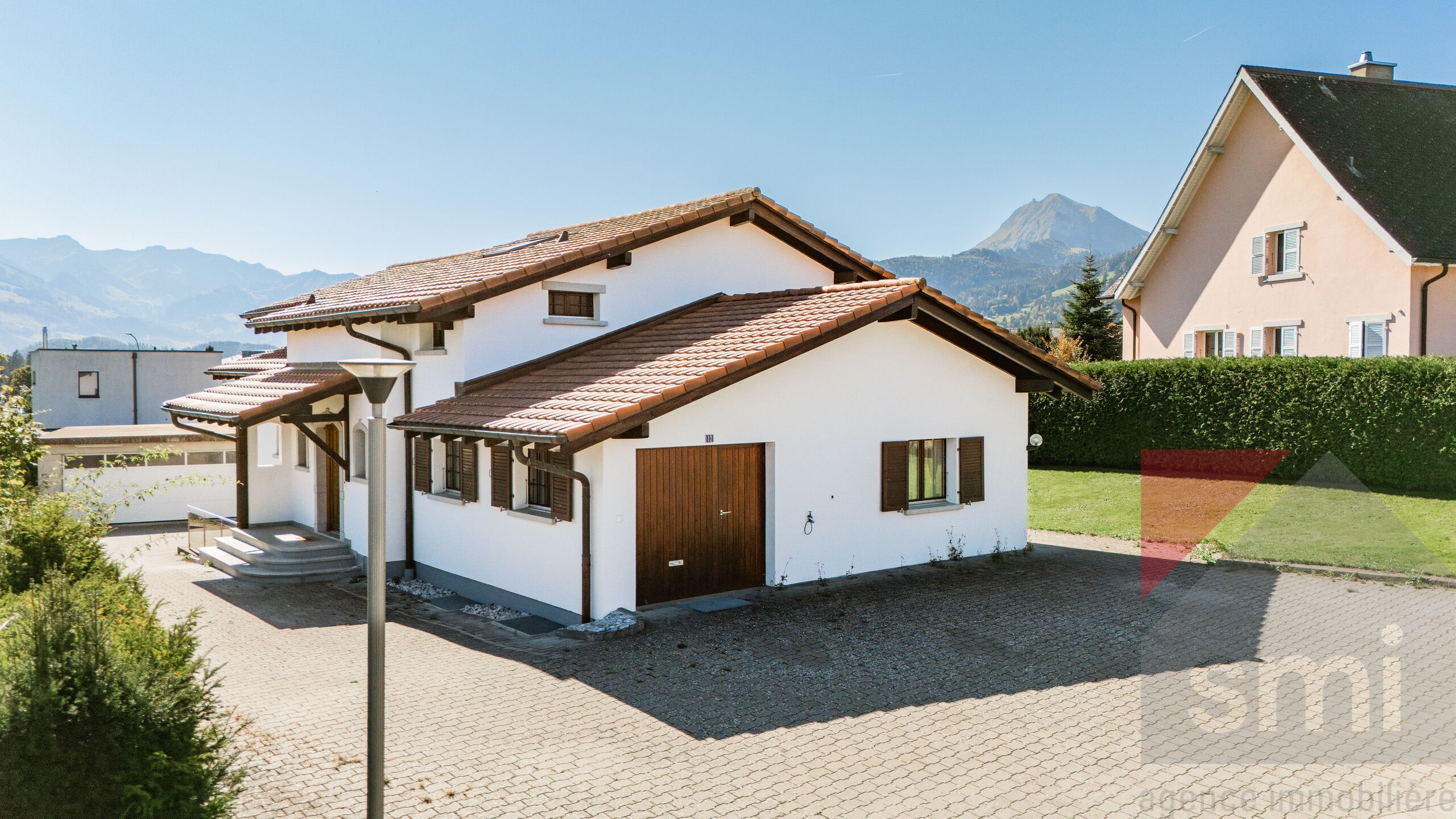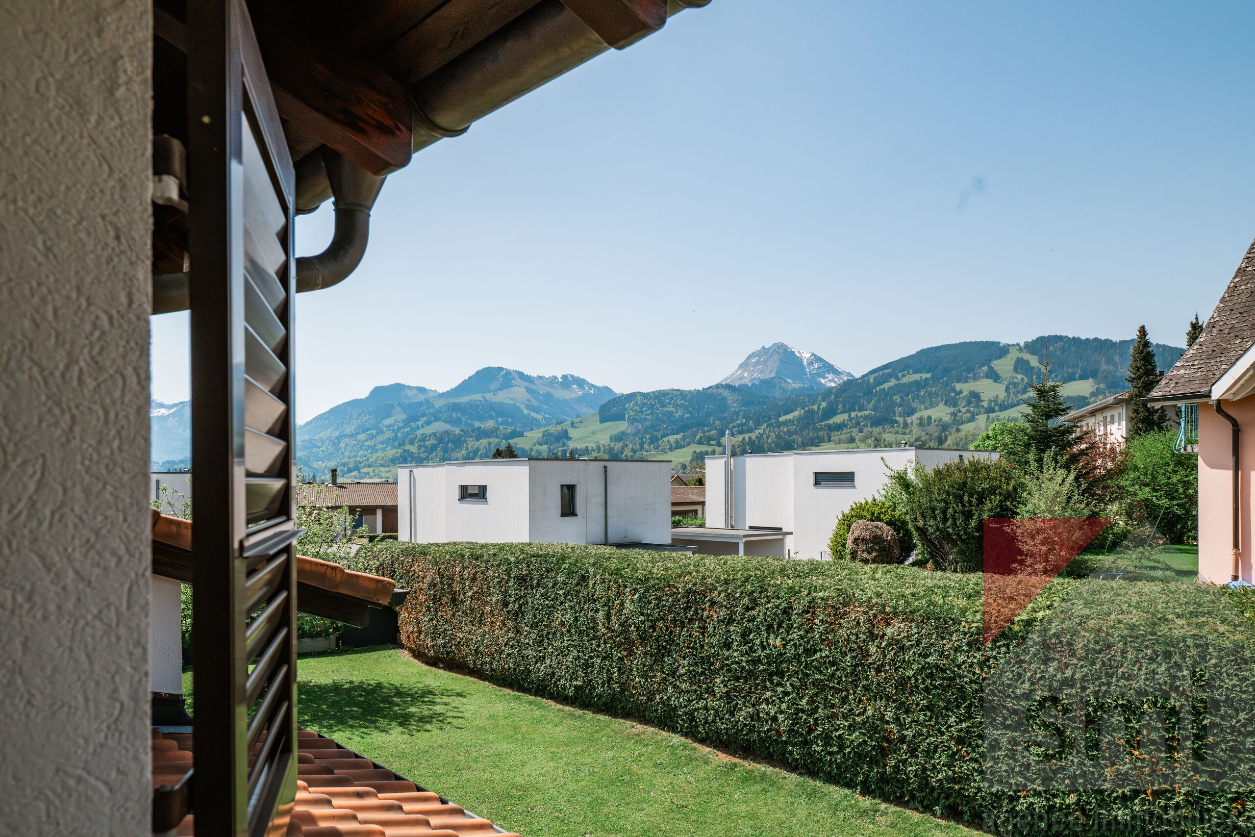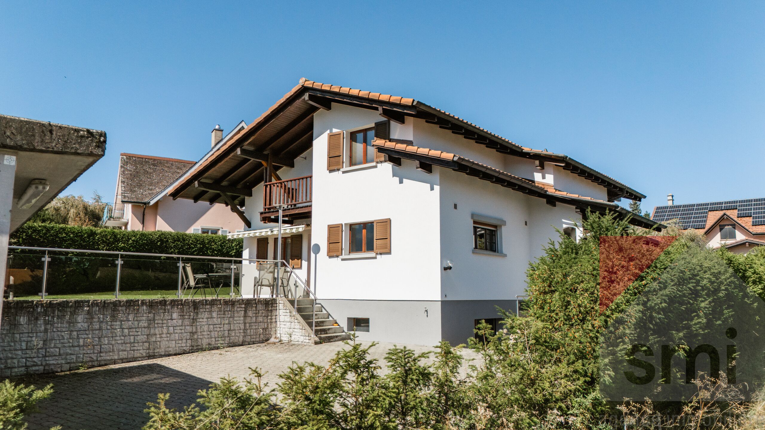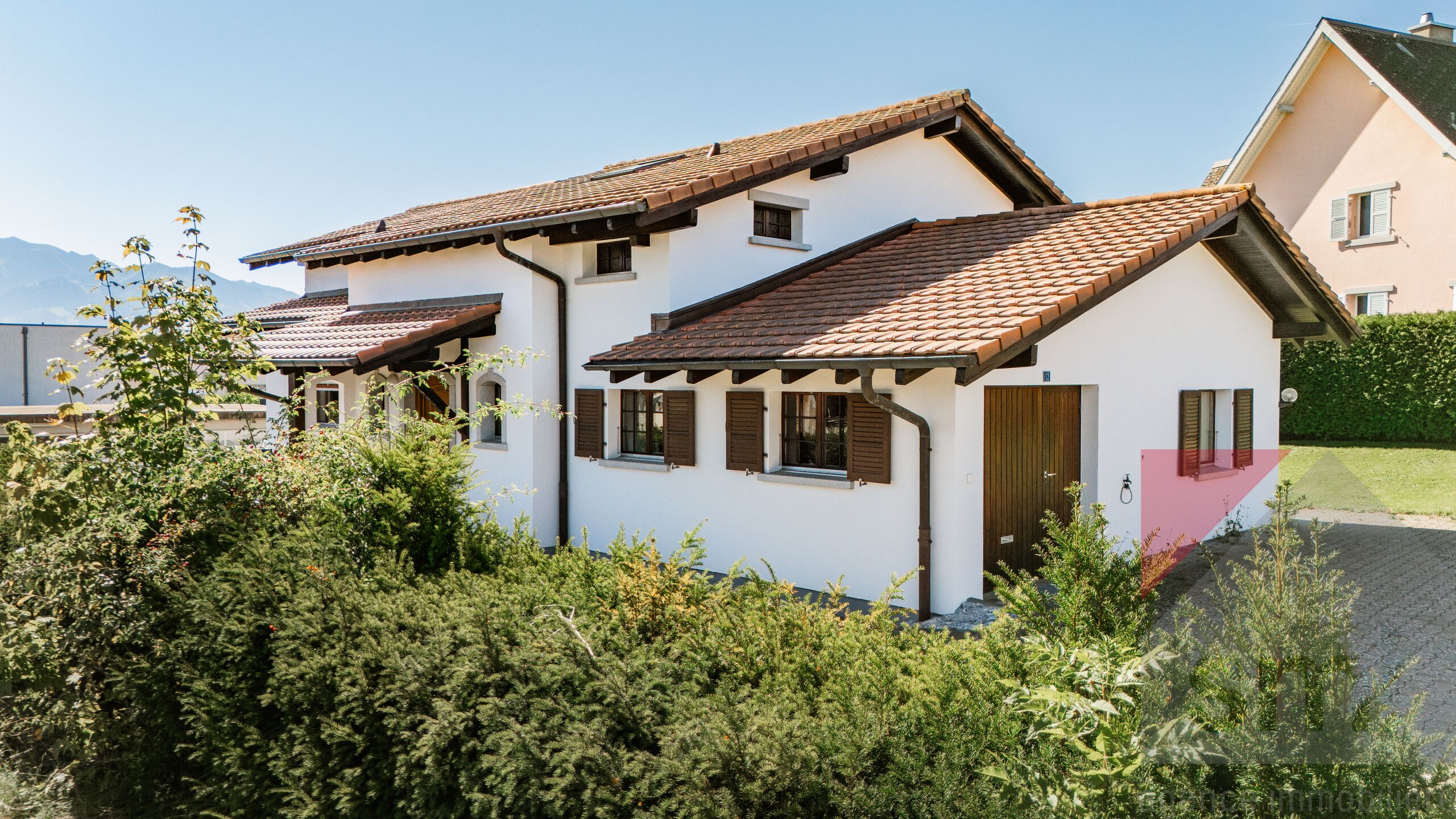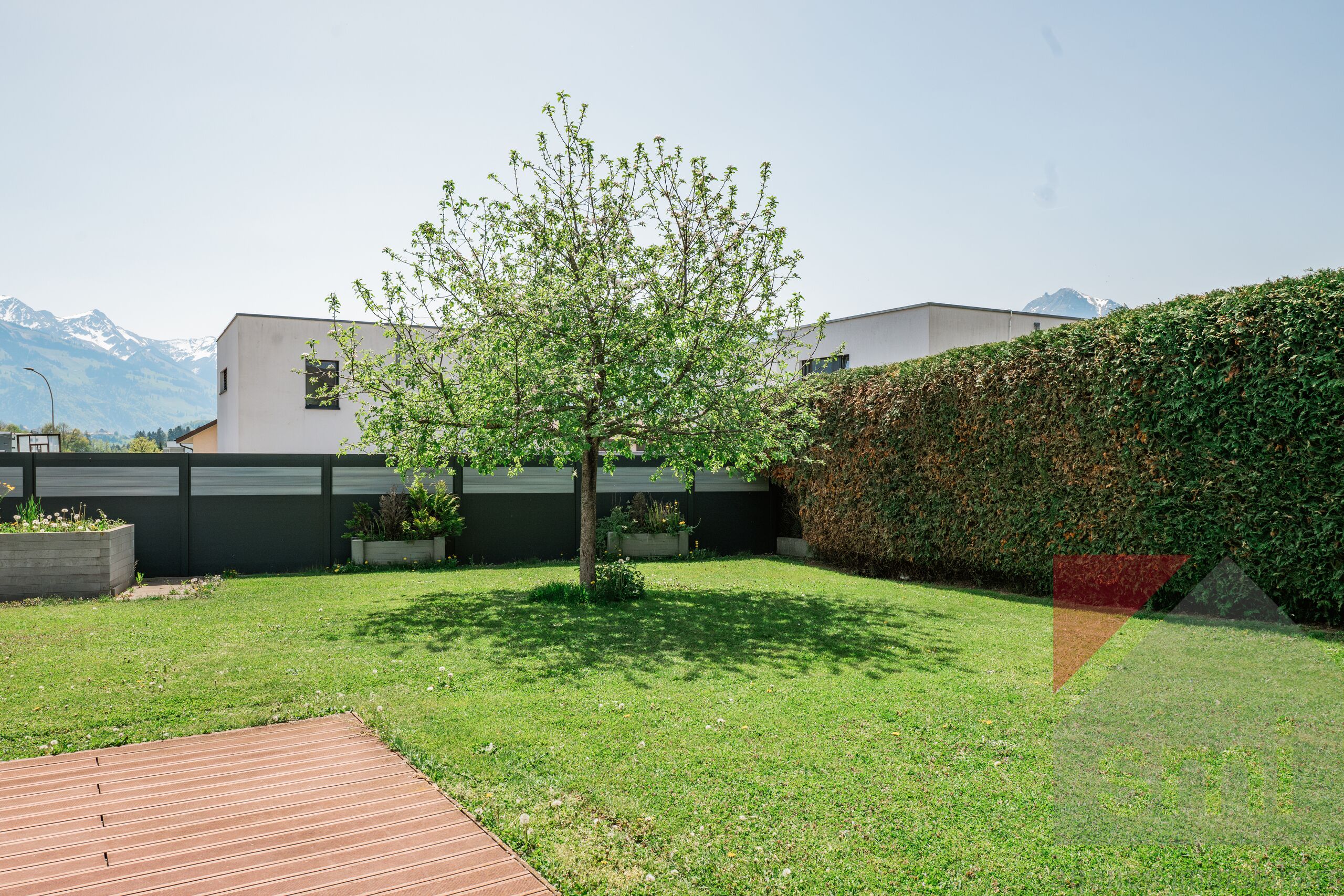 Elle est implantée sur une belle parcelle de 1'055m2et bénéficie d’un jardin plat soigneusement aménagé, d’une terrasse ensoleillée et d'un espace potager.