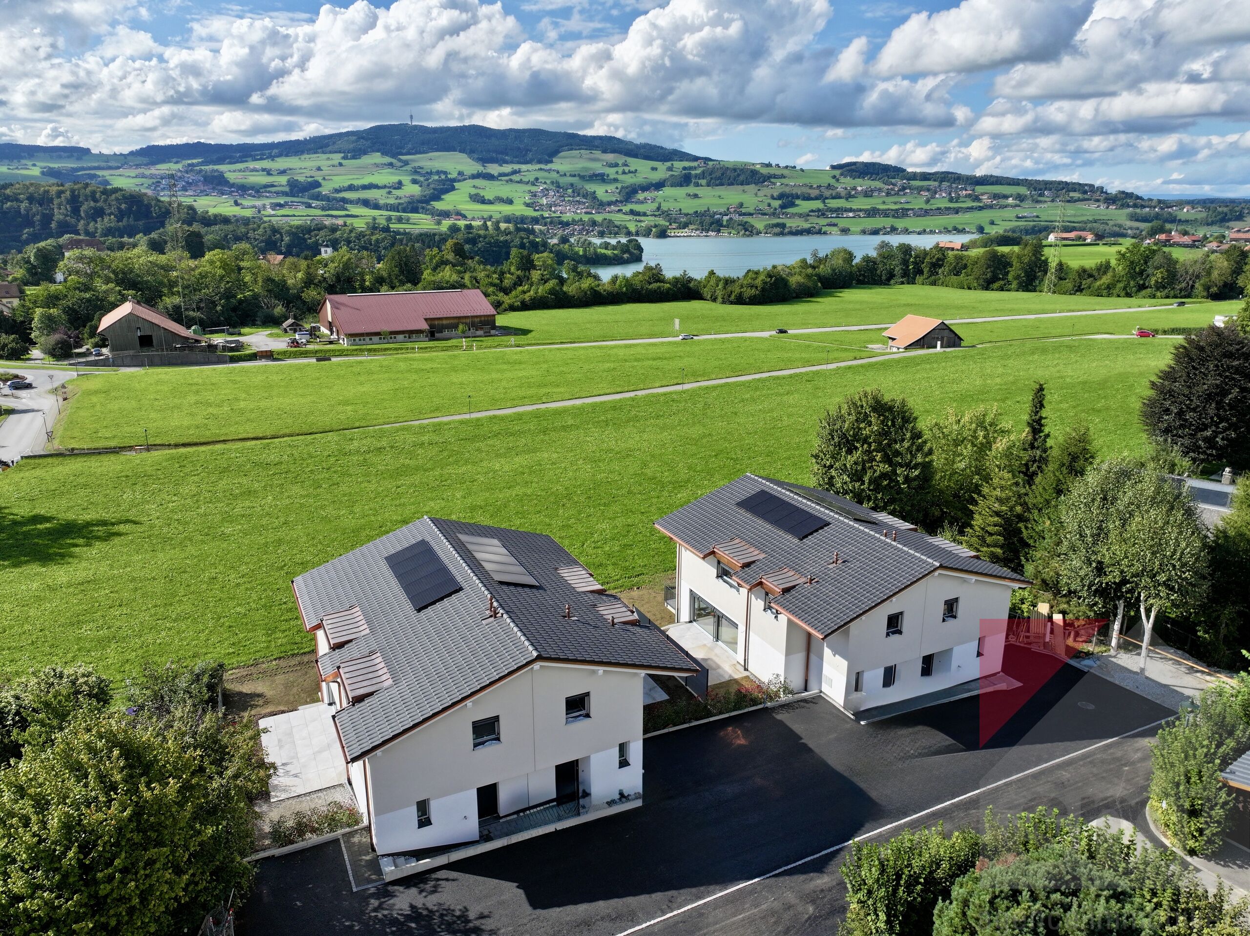 Cette villa neuve (lot C) de 5,5pces située à Corbières offre un environnement idyllique, en bordure de zone agricole. Depuis son balcon et sa terrasse, vous bénéficiez d'une vue imprenable sur le Gibloux et le lac de la Gruyère ! De grandes fenêtres ont été pensées pour en profiter également depuis le séjour et les chambres.